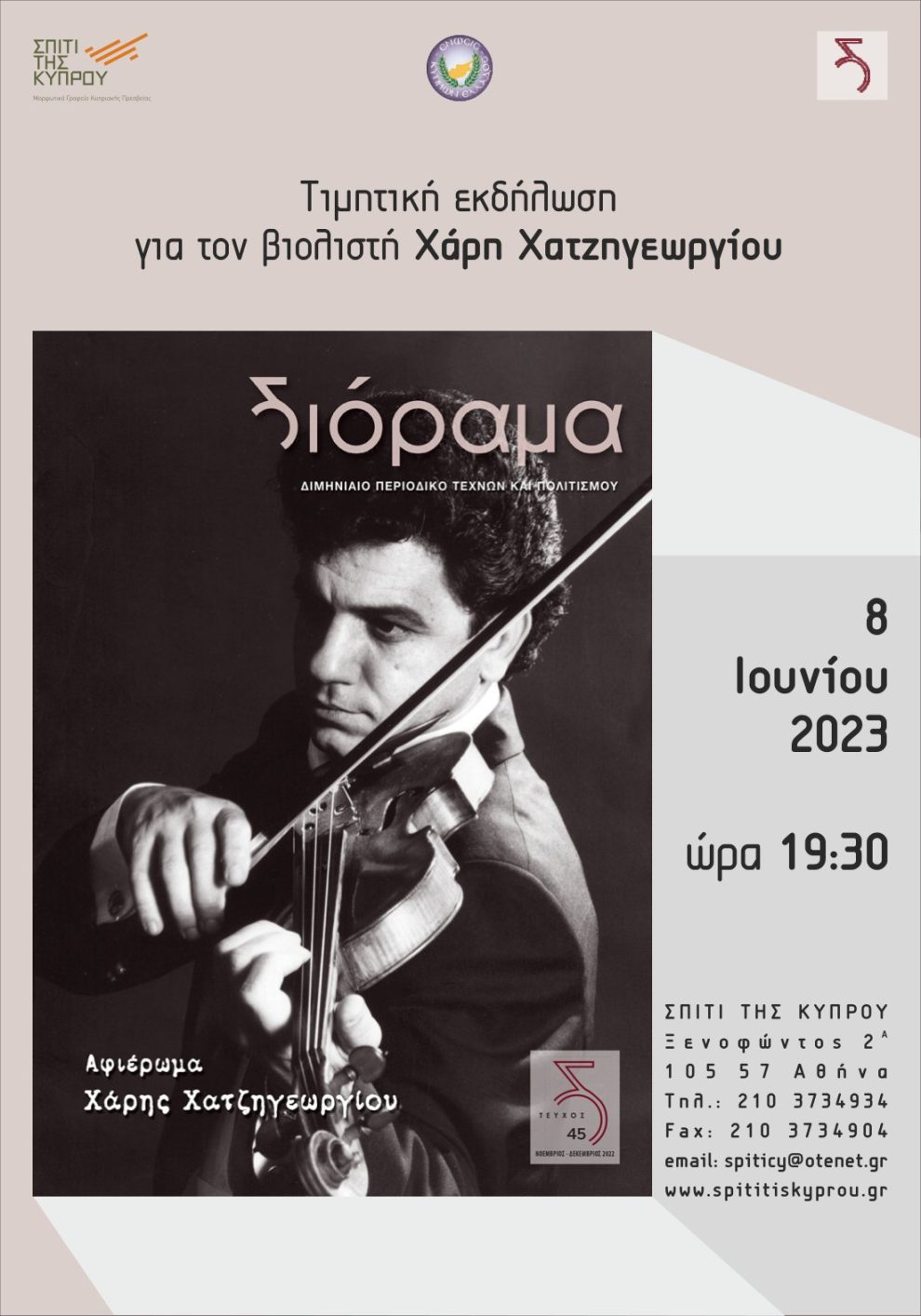Τιμητική Εκδήλωση για τον Χάρη Χατζηγεωργίου – 08/06/2023