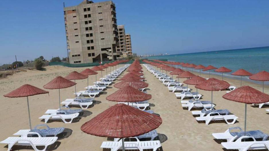 Παρά τις αντίθετες αποφάσεις του ΟΗΕ, οι Τούρκοι συνεχίζουν τα έργα στο Βαρώσι – Σχεδόν έτοιμο το νέο κομμάτι της παραλίας της Χρυσής Ακτής στην περίκλειστη πόλη της Αμμοχώστου. Στην παραλία έχουν τοποθετηθεί ομπρέλες με κρεβατάκια θάλασσας.