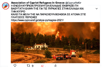 Η ΕΝΩΣΗ ΚΥΠΡΙΩΝ ΠΡΟΣΦΥΓΩΝ ΕΛΛΑΔΑΣ ΕΚΦΡΑΖΕΙ ΤΗ ΒΑΘΥΤΑΤΗ ΘΛΙΨΗ ΤΗΣ ΓΙΑ ΤΙΣ ΠΥΡΚΑΓΙΕΣ ΣΤΗΝ ΕΛΛΑΔΑ ΚΑΙ ΤΗΝ ΚΥΠΡΟ