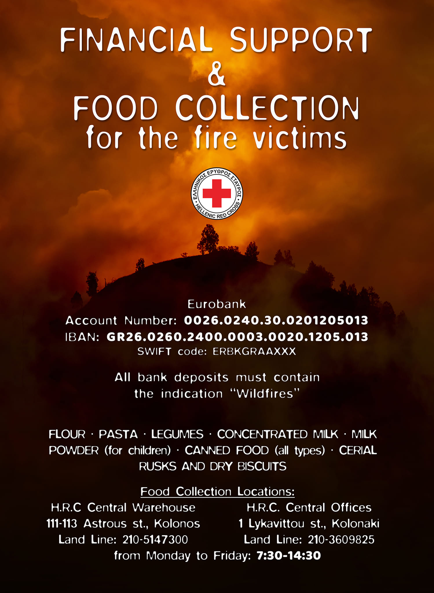 Εκστρατεία συλλογής ειδών πρώτης ανάγκης για τους πυρόπληκτους της Ελλάδας