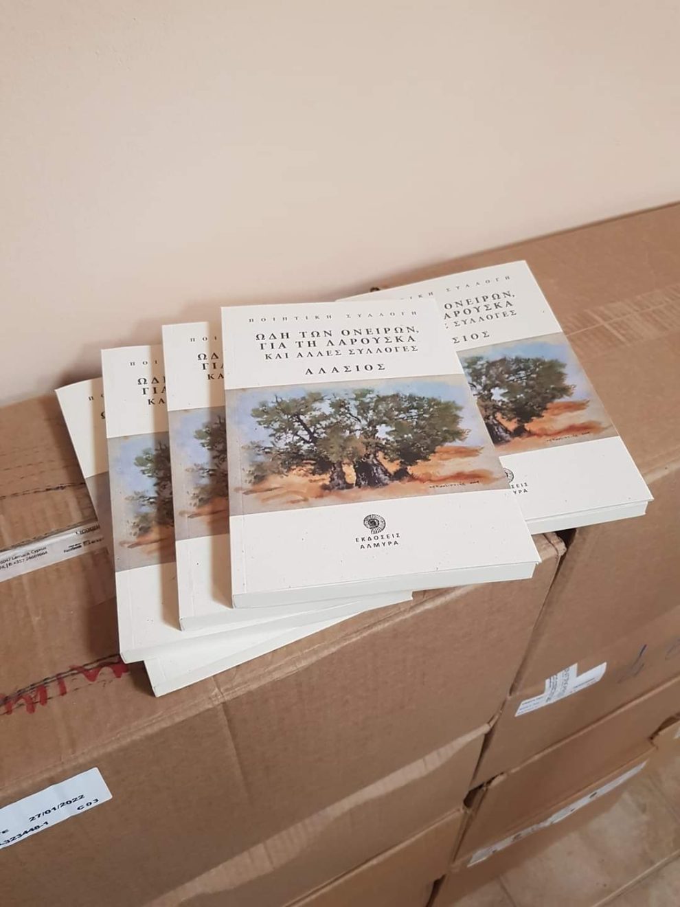 Παρελήφθηκαν από το τυπογραφείο τα βιβλία ποίησης του Αλάσιου “Ωδή των ονείρων, για τη Λάρουσκα και άλλες συλλογές”. Πριν από τρία χρόνια οι 7 αυτές συλλογές κυκλοφόρησαν σε πολύ μικρό αριθμό αντιτύπων σε ξεχωριστές μικρές εκδόσεις.